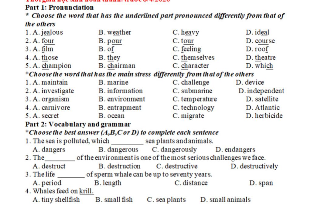* Choose the word that has the underlined part pronounced differently from that of