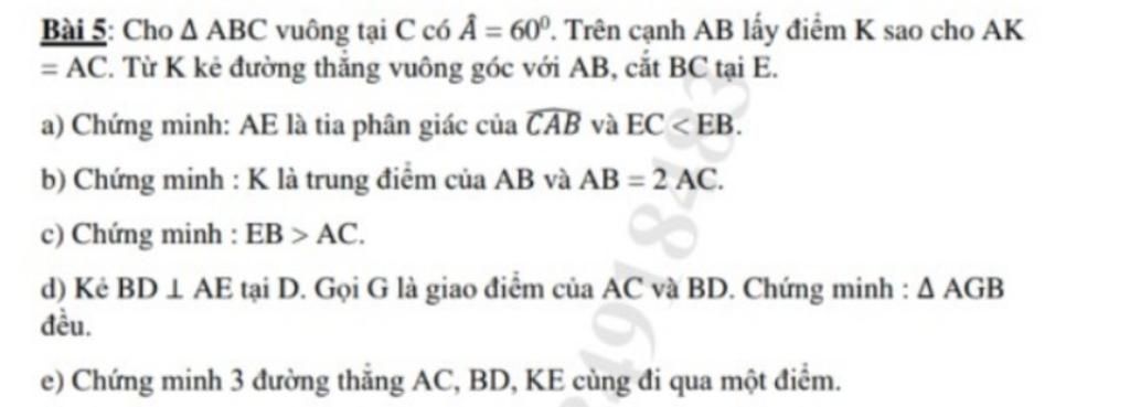 `=>` `DeltaAEC=DeltaAEK` (cạnh huyền - cạnh góc vuông)