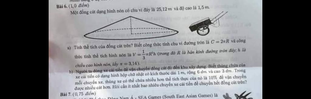 Số chuyến xe cần phải chở để chở hết đống cát là: $25,12:0,198 \approx 127$