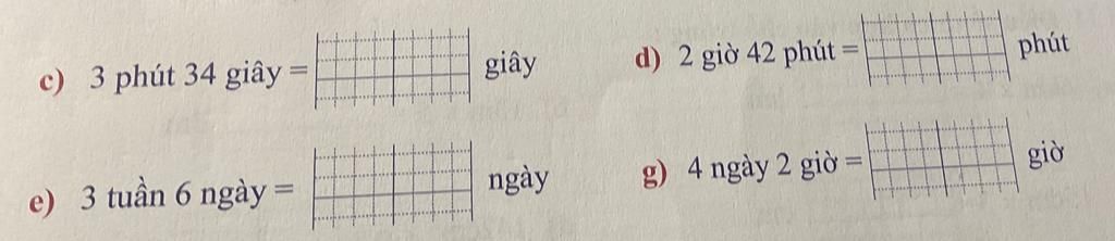 `g )` `4` ngày `2` giờ `=` `98` giờ