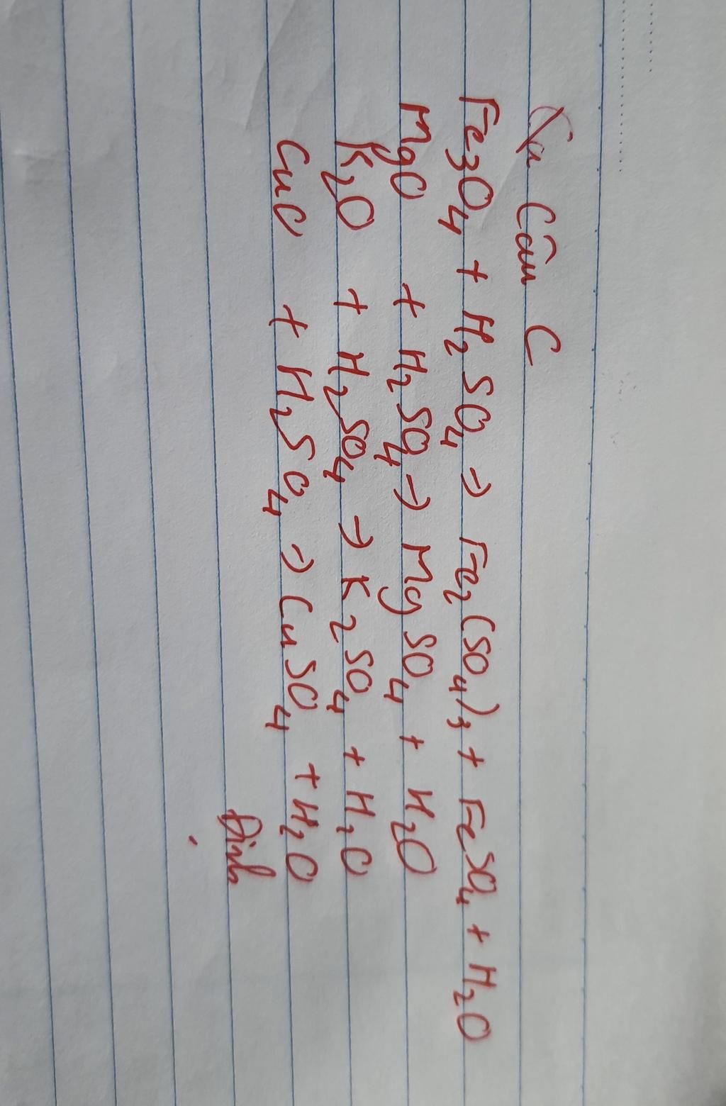 Có những oxit sau: MgO, Fe3O4, SO2 , CuO, P2O5 , K2O. Dãy các oxit nào sau đây tác dụng được với H2 SO4 trong dung dịch?
