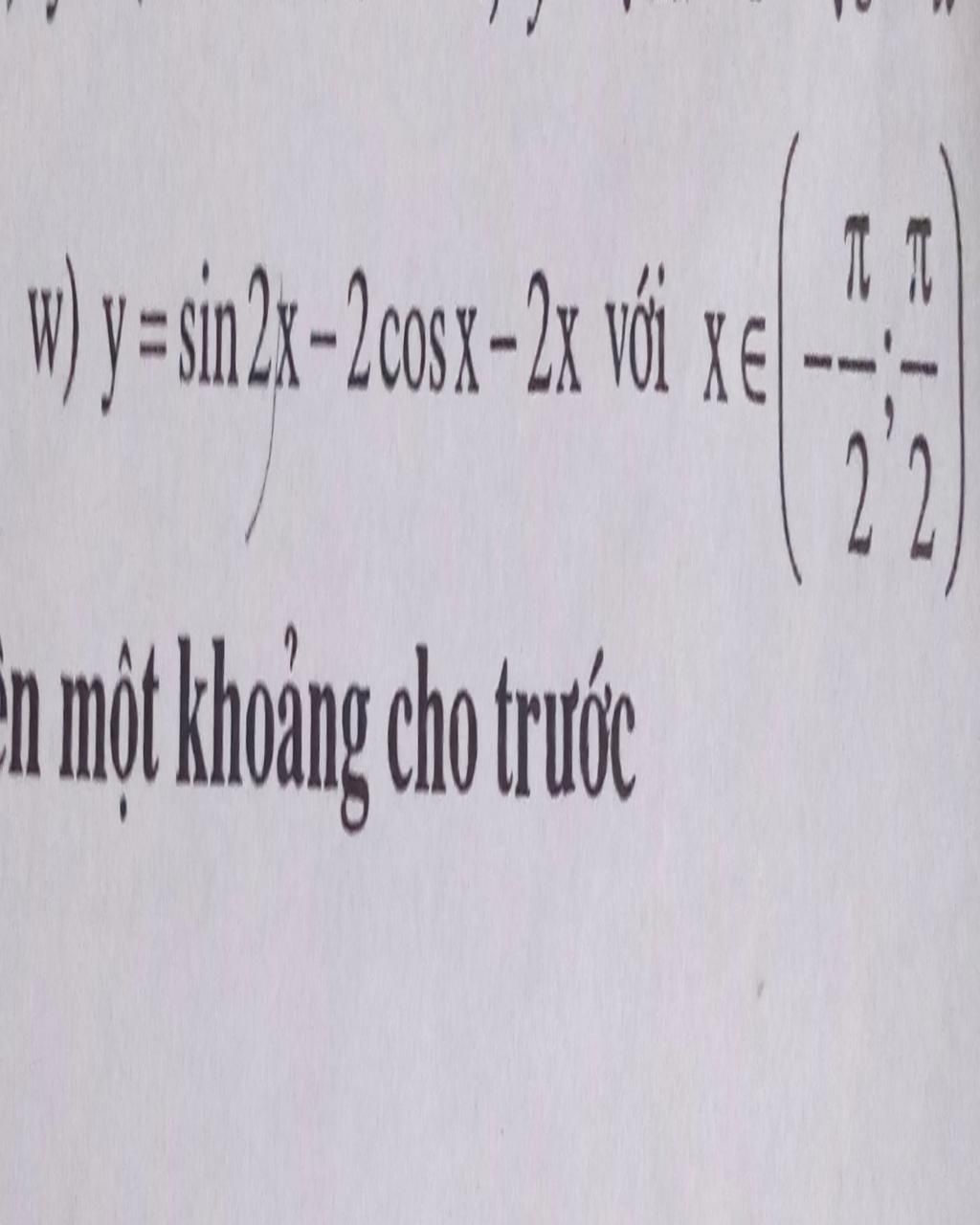 $y=\sin 2x-2\cos x-2x\\ y'=2\cos 2x+2\sin x-2\\ =2(1-2\sin^2x)+2\sin x-2\\ =2 \sin x - 4 \sin^2x\\ =2\sin x (1-2\sin x)\\ y'=0 \Leftrightarrow \left[\begin{array}{l} \sin x=0 \\ \sin x=\dfrac{1}{2}\end{array} \right.\Leftrightarrow \left[\begin{array}{l} x=k \pi(k \in \mathbb{Z}) \\ x=\dfrac{\pi}{6}+ l 2 \pi (l \in \mathbb{Z})\\ x=\dfrac{5\pi}{6}+ m 2 \pi (m \in \mathbb{Z})\end{array} \right.\\ x \in \left(-\dfrac{\pi}{2};\dfrac{\pi}{2} \right) \Rightarrow x=0(k=0); x=\dfrac{\pi}{6}(l=0)$