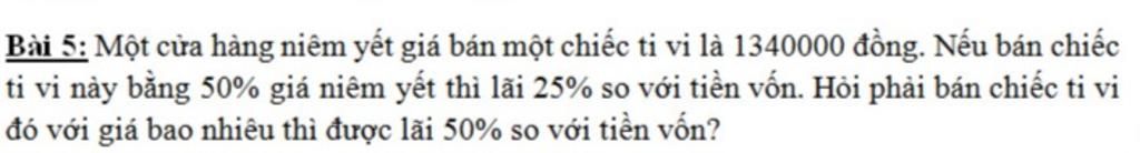 Phải bán chiếc ti vi đó với số tiền đề lãi được `50%` tiền vốn là :