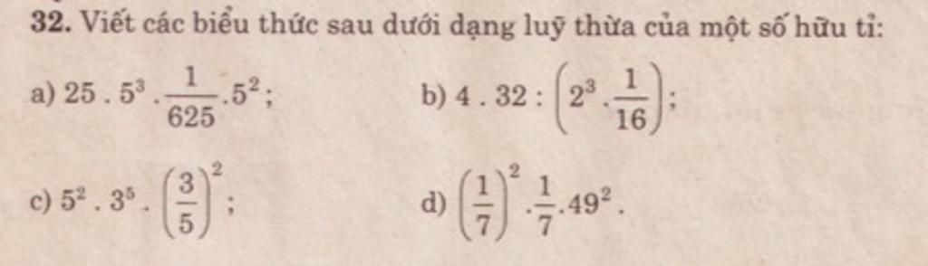 `d) ( 1/7 )^2 . 1/7 . 49^2`