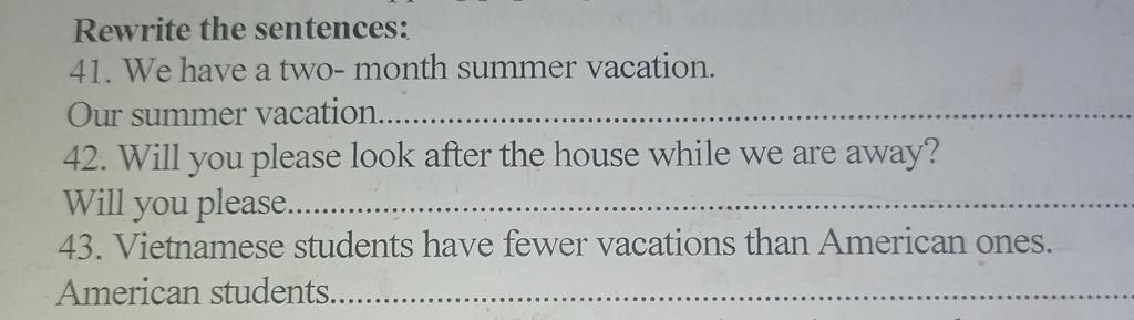 `-` Kì nghỉ hè của chúng tôi kéo dài 2 tháng