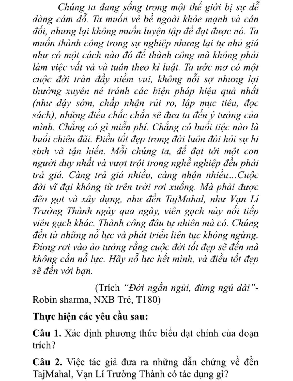 - Phương thức biểu đạt chính được sử dụng của đoạn trích.