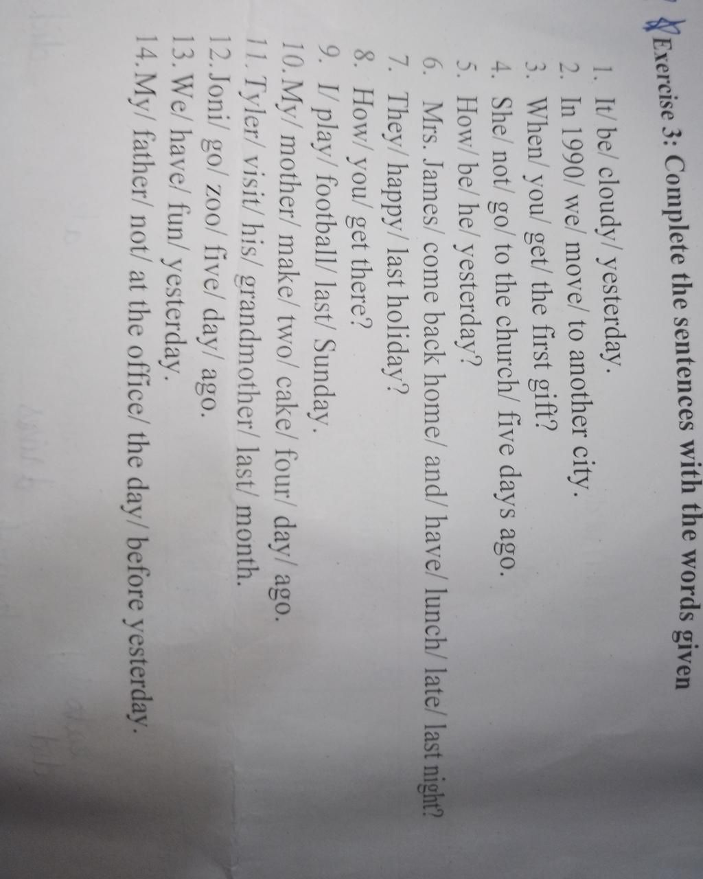 6. Mrs. James/ come back home/ and/have/ lunch/ late/ last ni ...
