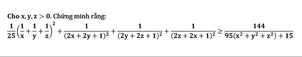 `1/25(9/(x+y+z))^2+1/(2x+2y+1)^2+1/(2y+2z+1)^2+1/(2z+2x+1)^2`