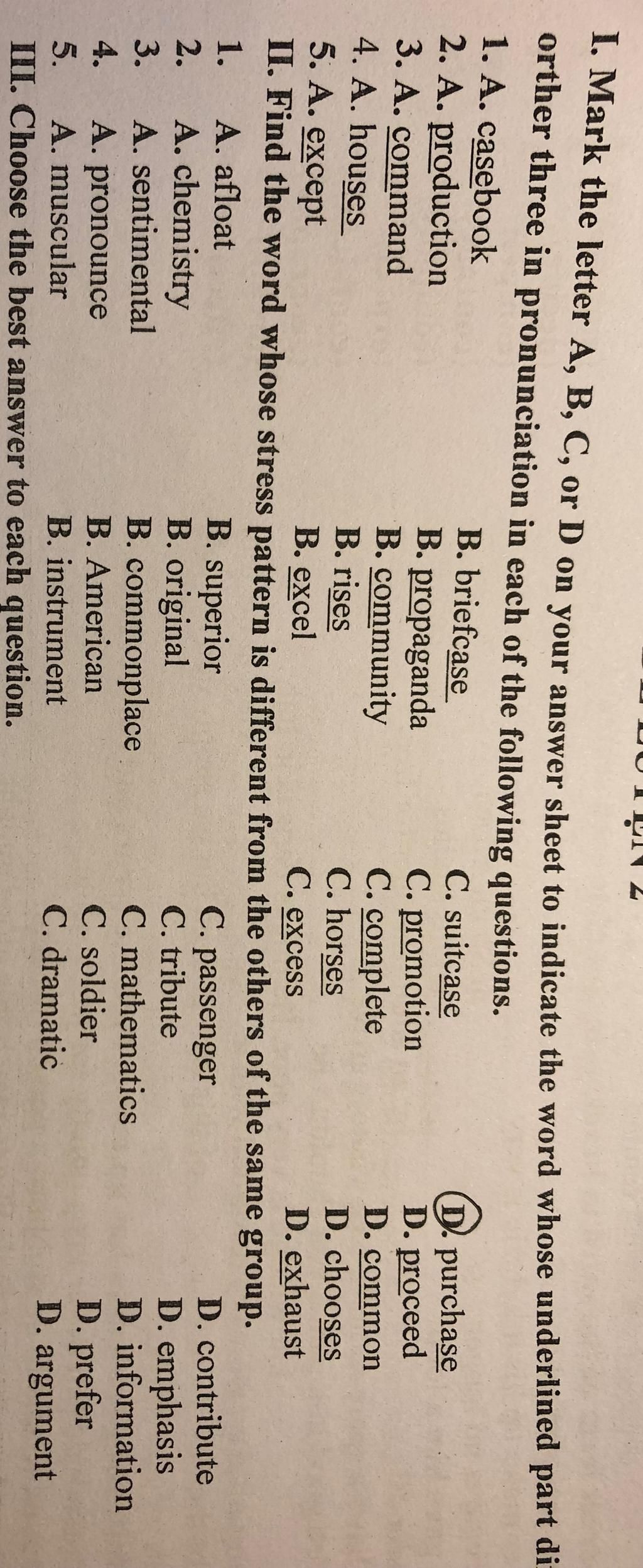 A,B,C đọc là /kə/ còn D đọc là /kɒ/