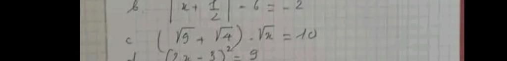 `c) ( \sqrt{9} + \sqrt{4} ) . \sqrt{x} = 10 ( ĐK : x ≥ 0 )`