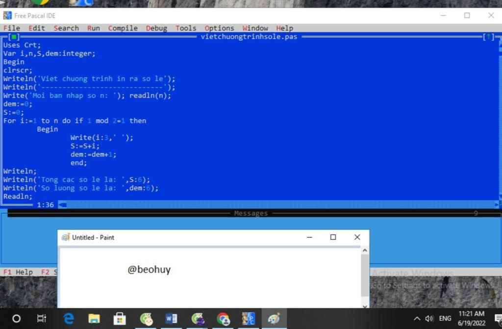 for i:=1 to n do if i mod 2<>0 then begin d:=d+1; write (i:4); s:=s+i; end;