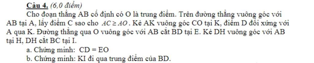AB tại A, lấy điểm C sao cho AC≥40. Kẻ AK vuông góc CO tại K. điểm D đối xứng với