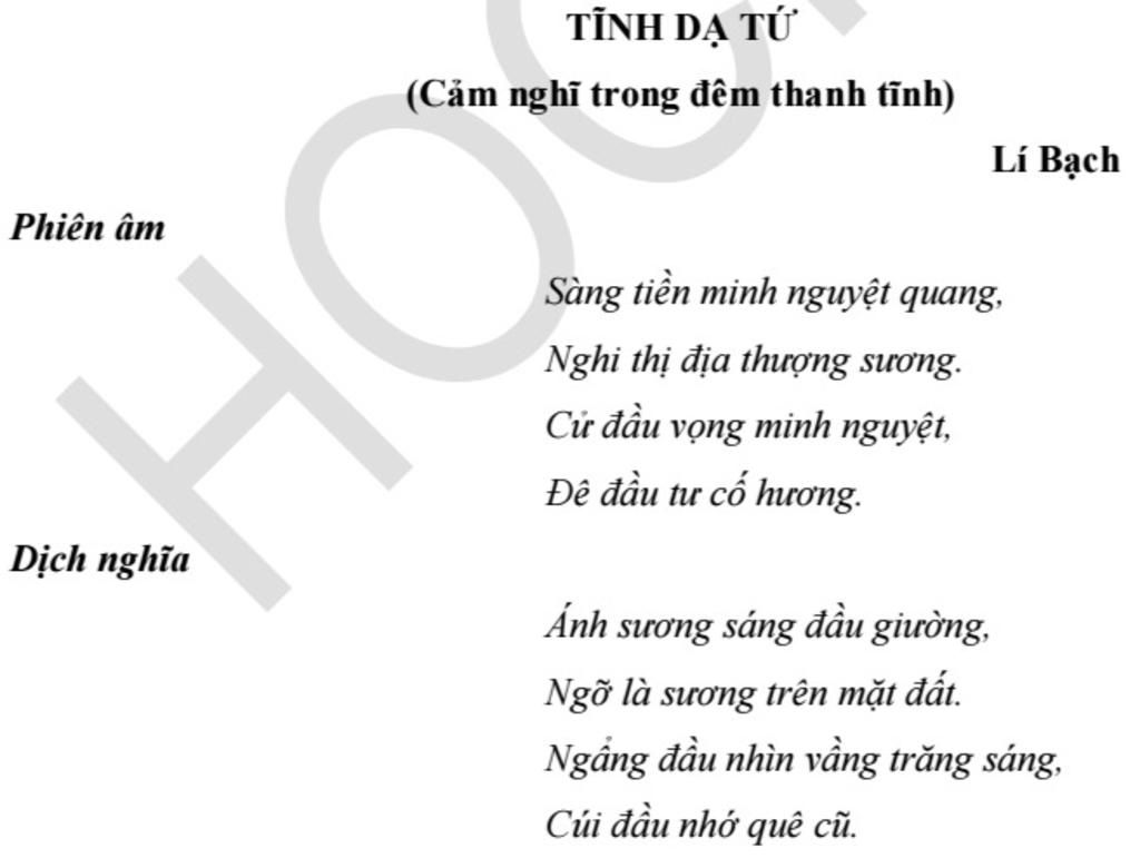 1. Bài thơ "Tĩnh dạ tứ" được viết theo thể thơ ngũ ngôn.