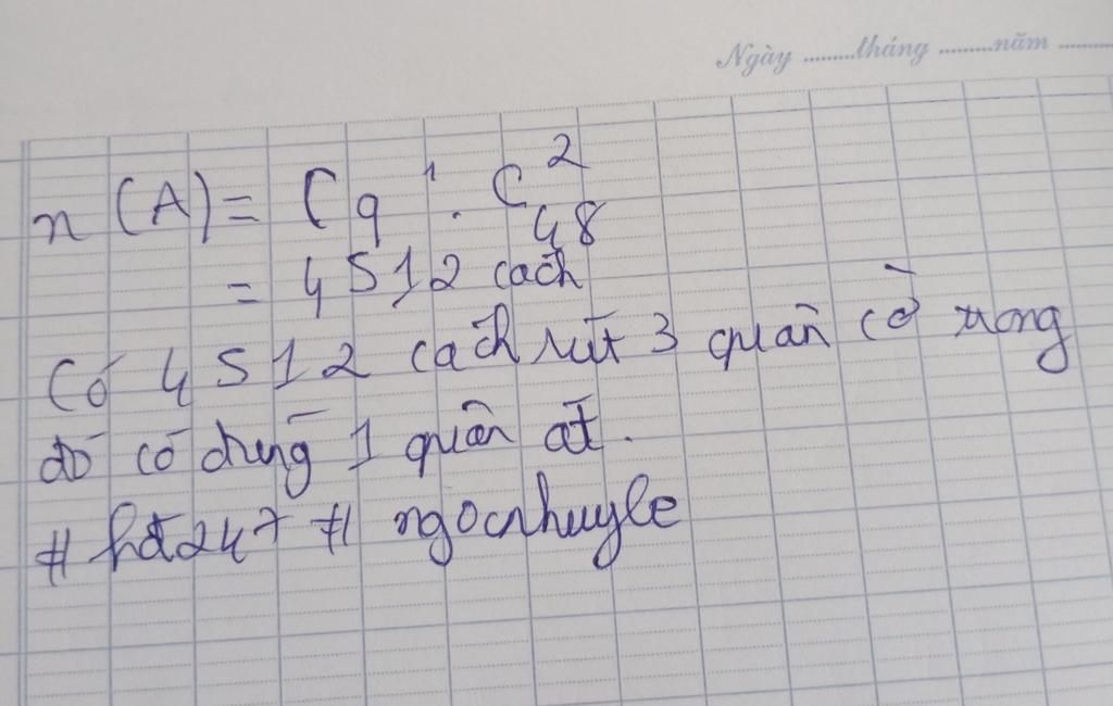 Vậy số cách rút thỏa mãn là $C_{48}^2.C_4^1=4512$ lá.