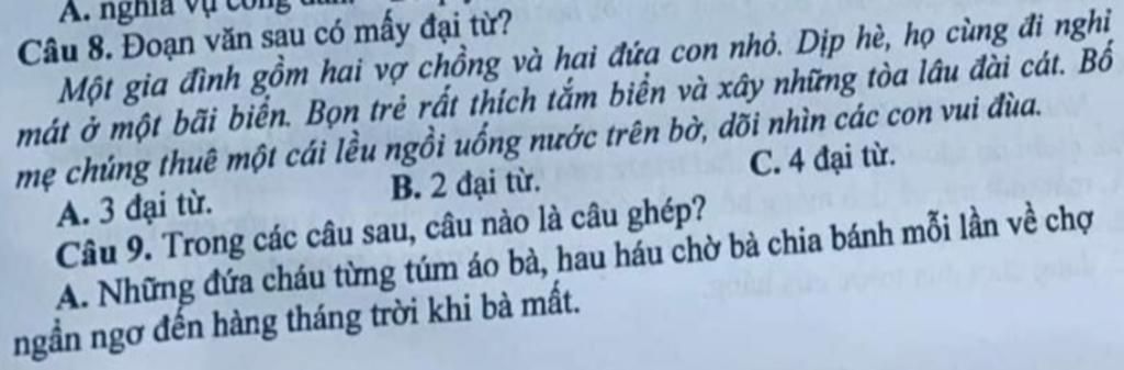 Câu 8. Đoạn văn sau có mấy đại từ?