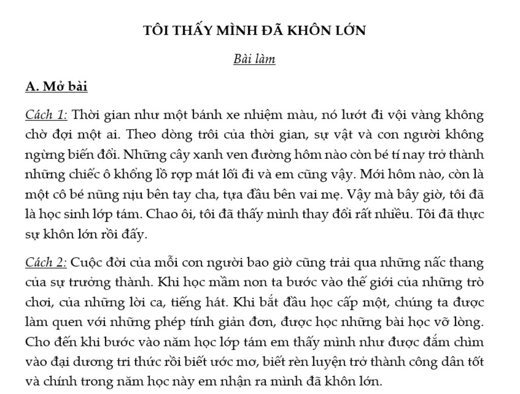 Đề bài: Tôi thấy mình đã khôn lớn.
