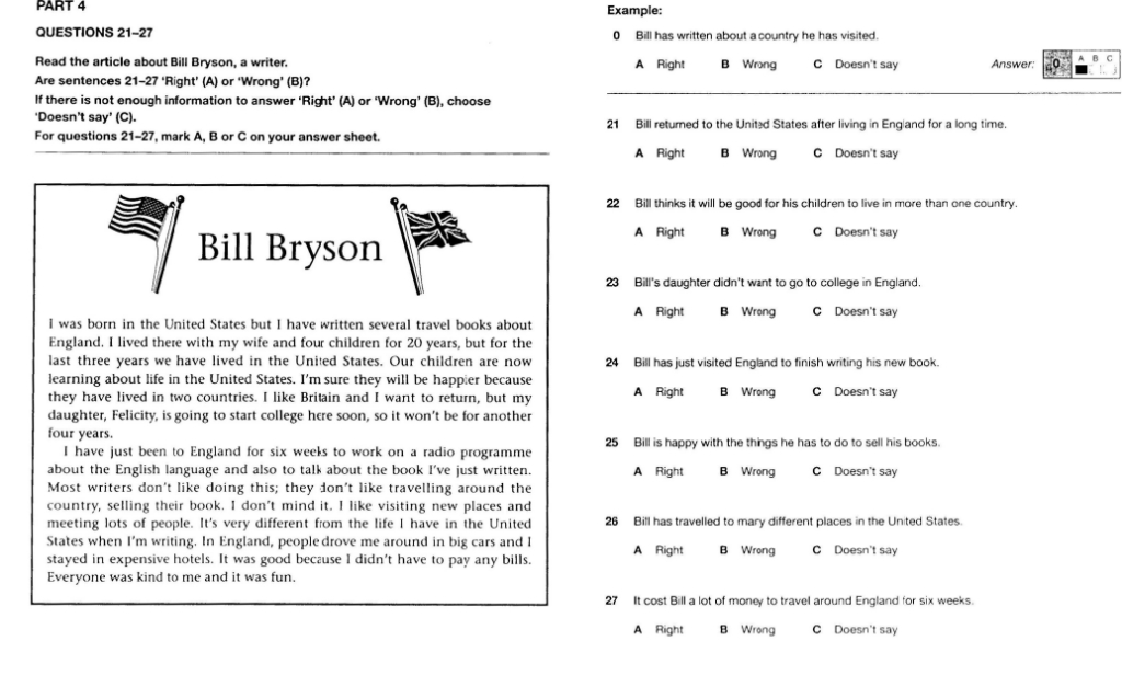 Are sentences 21-27 'Right' (A) or 'Wrong' (B)?