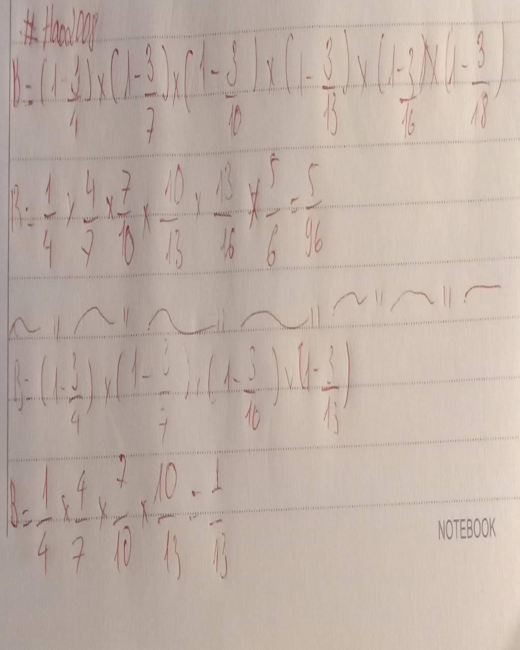 `B=(4/4-3/4)xx(7/7-3/7)xx(10/10-3/10)xx(13/13-3/13)xx(16/16-3/16)xx(19/19-16/19)`