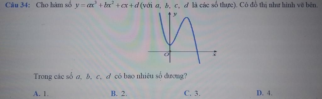 - Giao với trục tung tại điểm có tung độ dương $\Rightarrow d>0$