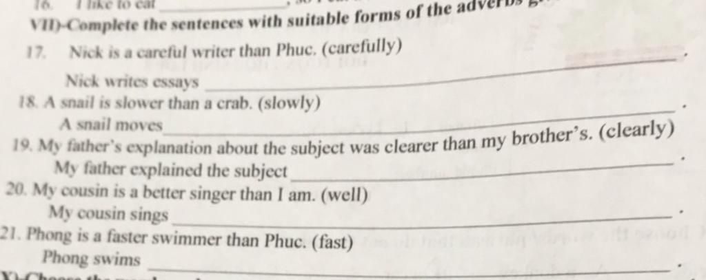 `17`.Nick writes essays more carefully than Phuc