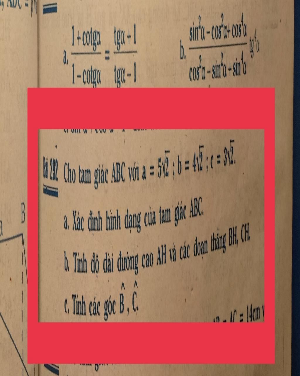 b. Tính độ dài đường cao Anh và các đoạn thông BH O