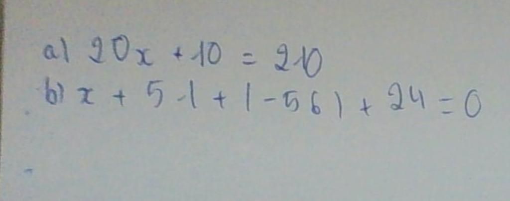 `a) 20x + 10 = 210`