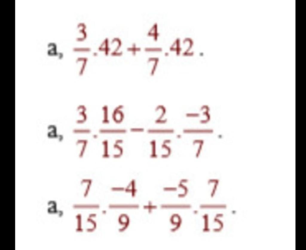 `a,` `7/15 . (-4)/9 + (-5)/9 . 7/15`