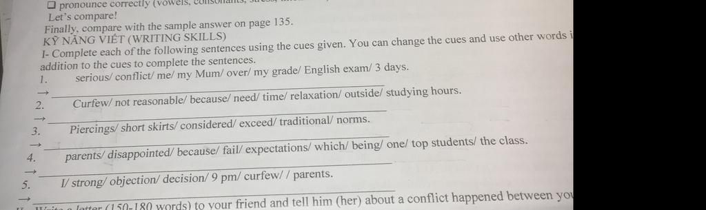 1- Complete each of the following sentences using the cues given. You can change the cues and use other words i