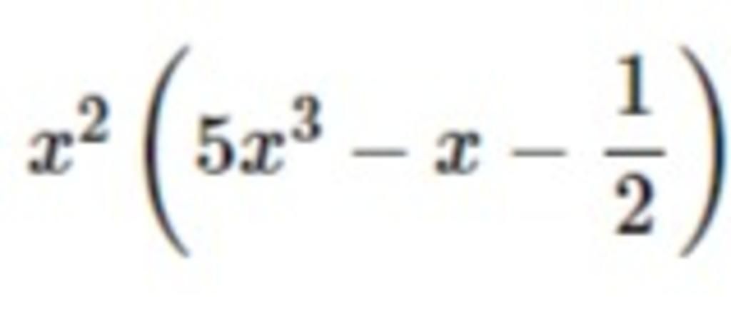 ` = ( x^2 . 5x^3 ) - ( x^2 . x ) - ( x^2 . 1/2 ) `