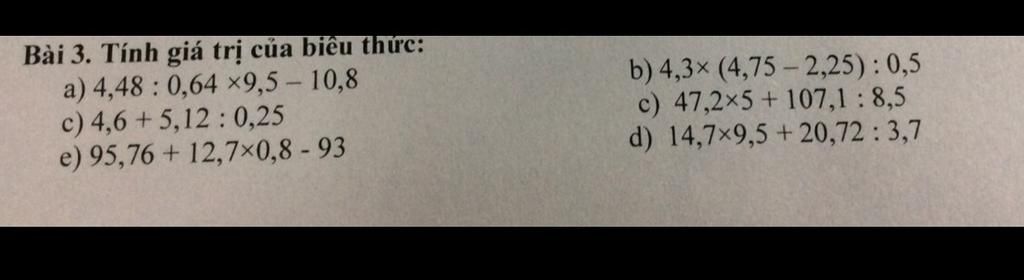 `a) 4,48 : 0,64 × 9,5 - 10,8`