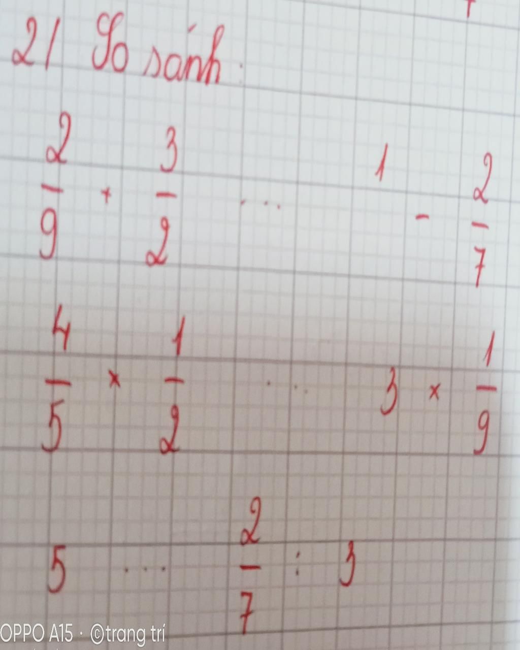 Vậy `31/18 > 5/7 ; 2/9 + 3/2 > 1 - 2/7`