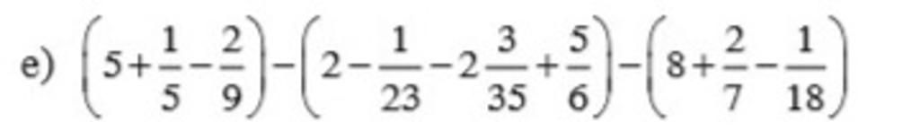 `e, (5 + 1/5 - 2/9) - (2 - 1/23 - 2 3/35 + 5/6) - (8 + 2/7 - 1/18)`