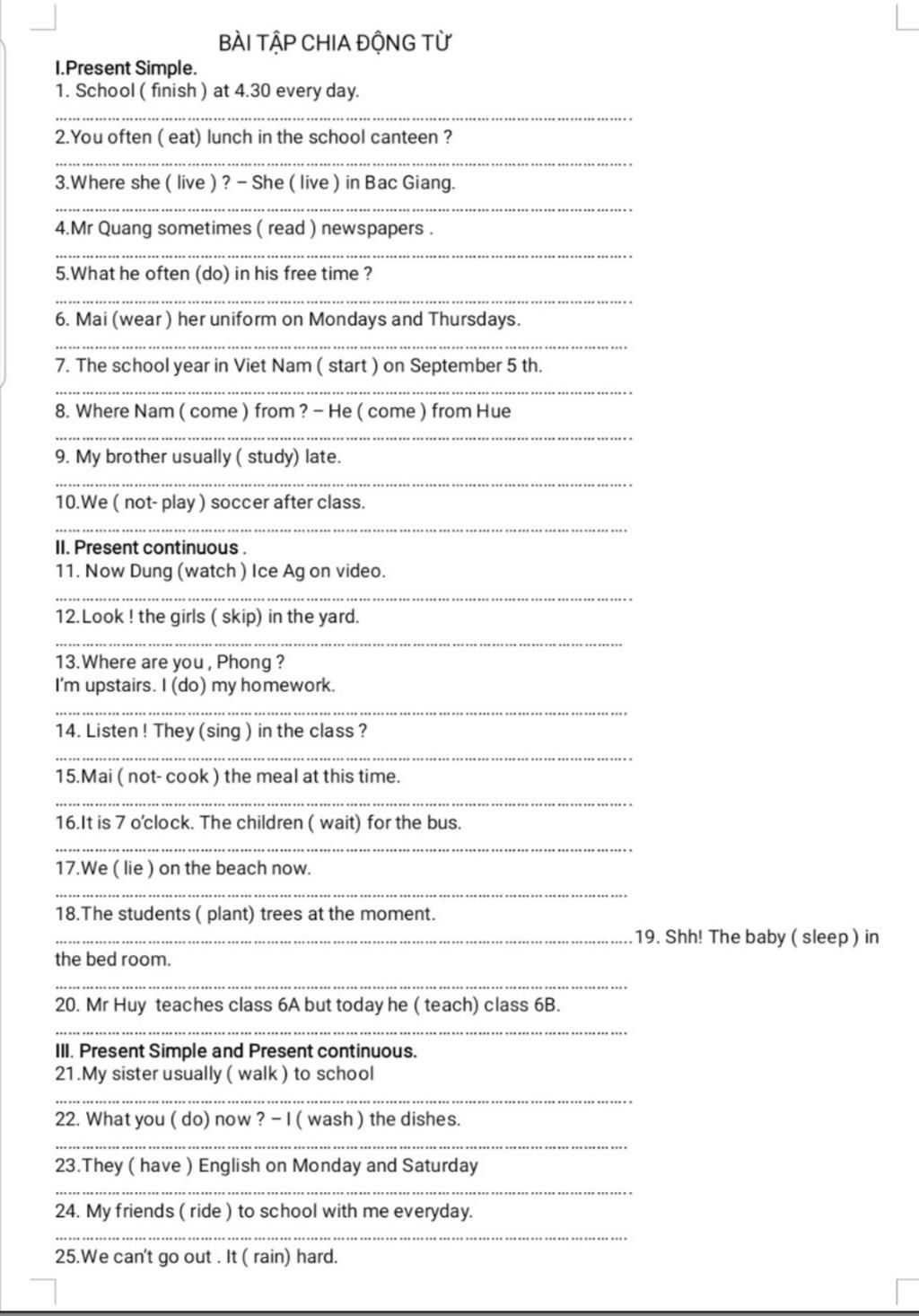 `-` N(số ít) : he/she/it/... + does/doesn't/V(s/es)