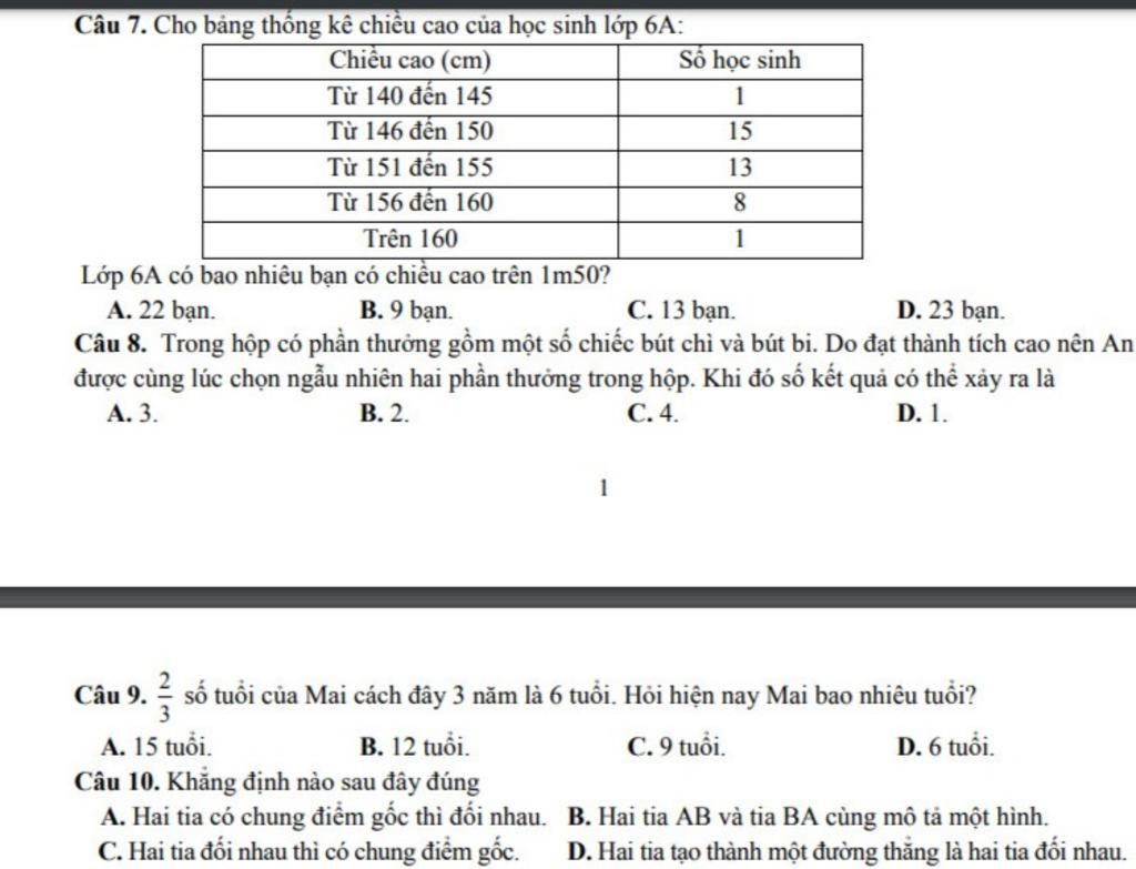 `2` bút chì ; `2` bút bi ; `1` bút chì `1` bút bi
