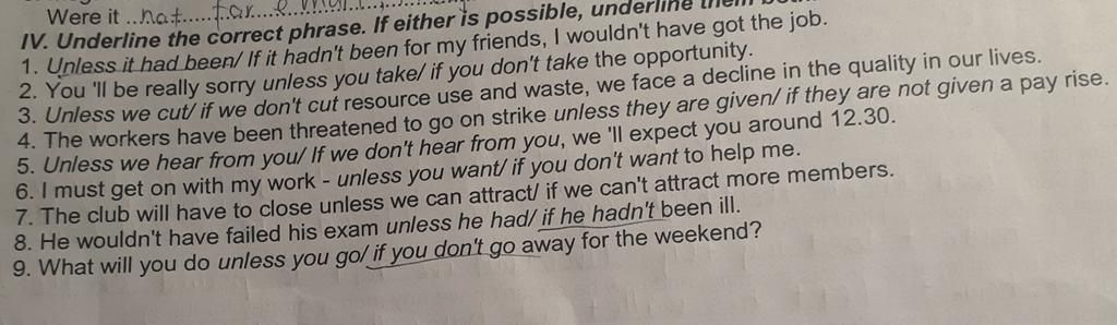 IV. Underline the correct phrase. If either is possible, underline
