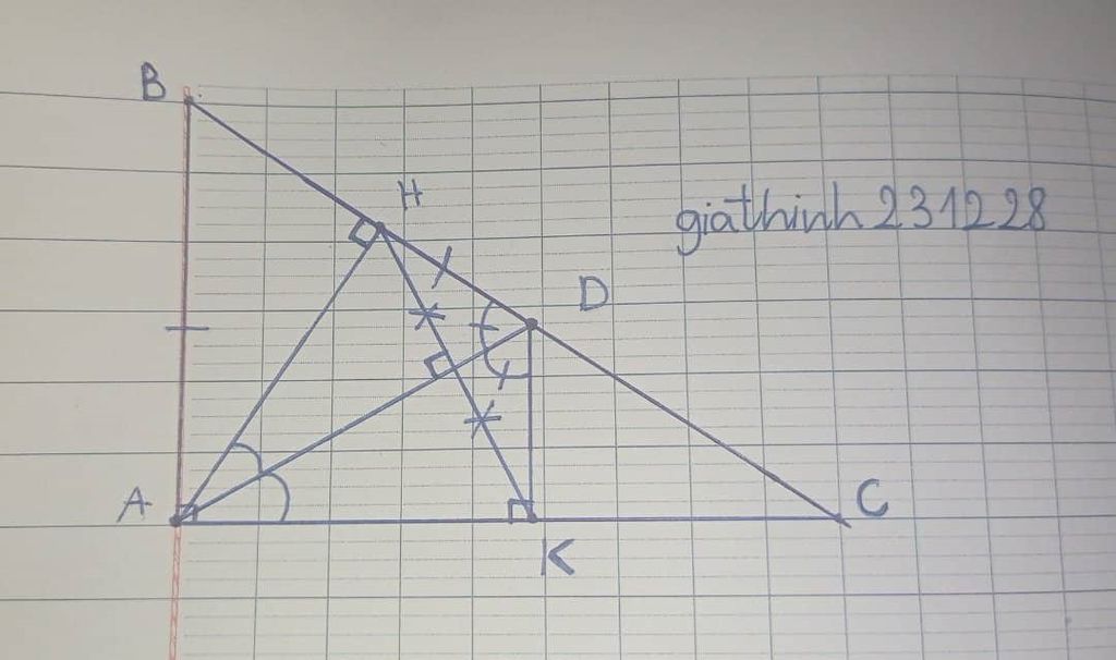 $\begin{cases} AD \text{ chung}\\\widehat{HAD} = \widehat{DAK} ( cmt)\\\widehat{AHD} = \widehat{DHK} ( = 90^o) \end{cases}$