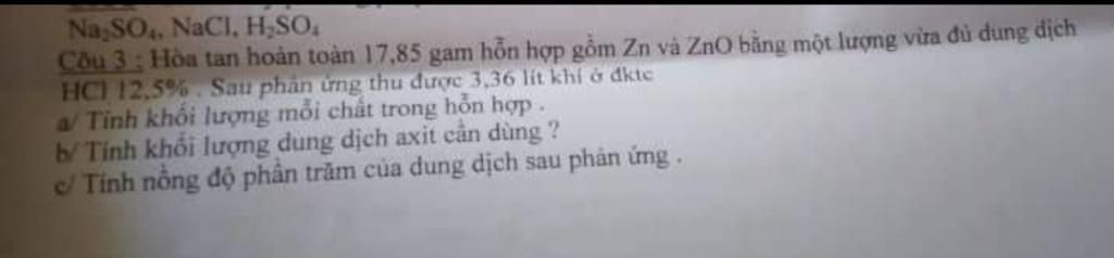 Theo PT, `n_(ZnCl_2` `=` `(1)/(2)n_(HCl` `=` `0,25` $(mol)$