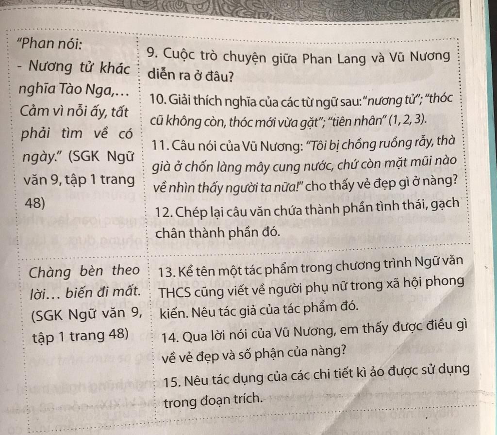14. Qua lời nói của Vũ Nương, em thấy được lòng thủy chung, tình nghĩa về vẻ đẹp và số phận của nàng.
