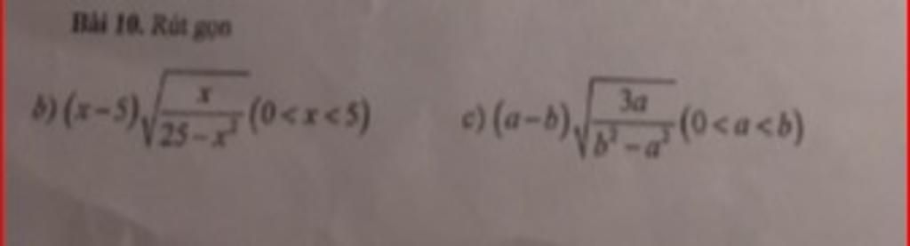 $=-\sqrt{(b-a)^2\cdot \dfrac{3a}{(b-a)(b+a)}}$ vì $0<a<b\to b-a>0\to (b-a)=\sqrt{(b-a)^2}$
