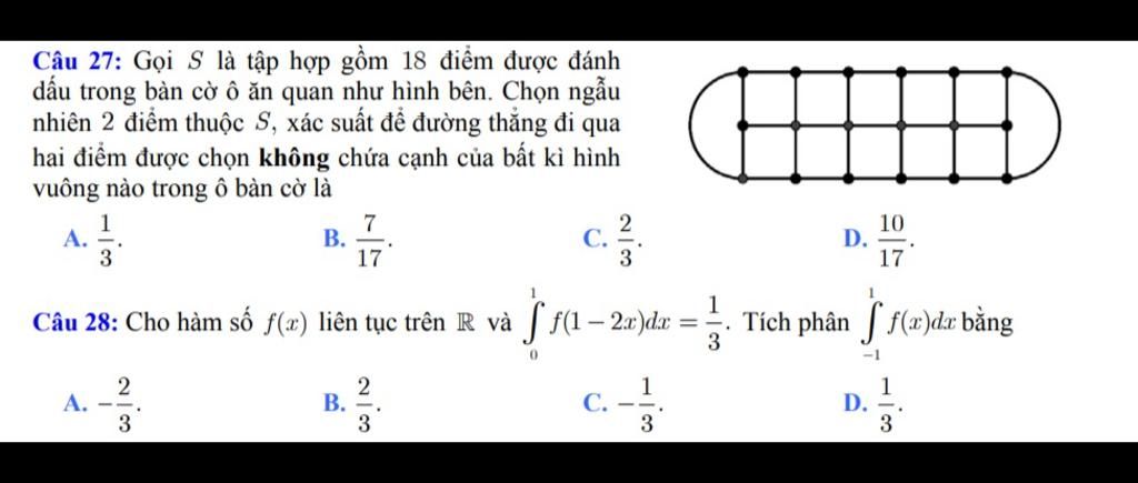 Câu 27: Gọi S là tập hợp gồm 18 điểm được đánh