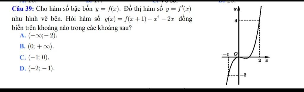 Dựa vào đồ thị, $f'(t)>2t$ khi $t \in (-1;0); t \in (2;+\infty)$