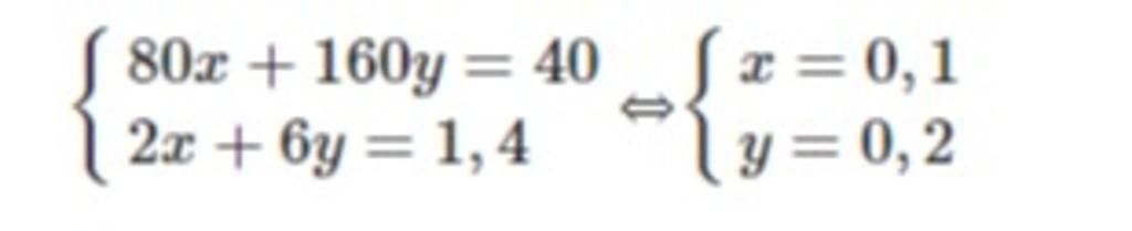 $\begin{cases} 80x+160y=40\\2x+6y=1,4 \end{cases}$