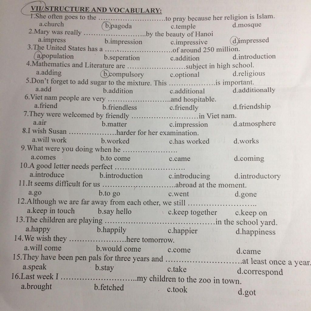 VII/STRUCTURE AND VOCABULARY: