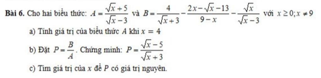 Bài 6. Cho hai biểu thức: 4 = và B=–