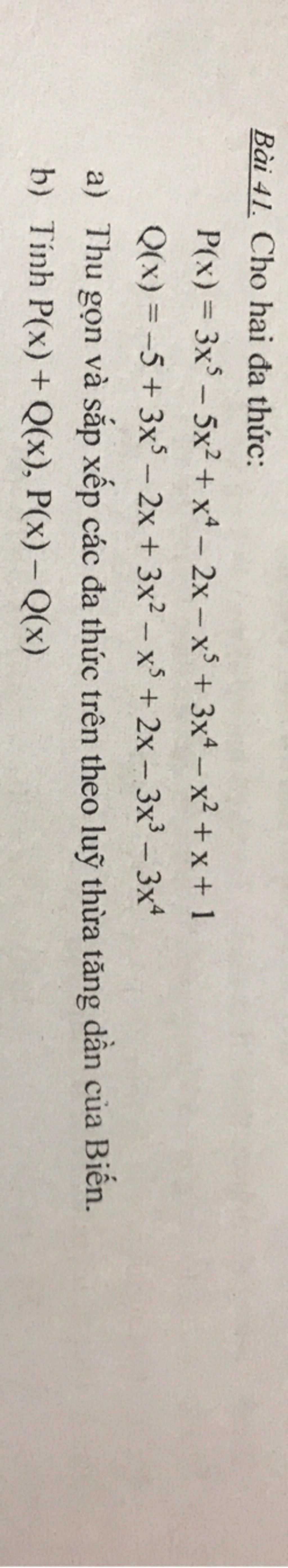 `b) @ P(x) + Q(x) = ( 2x^5 + 4x^4 - 6x^2 - x + 1 ) + ( 2x^5 - 3x^4 - 3x^3 + 3x^2 - 5 )`