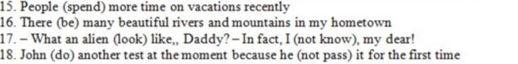 - Recently `->` thì hiện tại hoàn thành: S + have/has + V3/ed + O