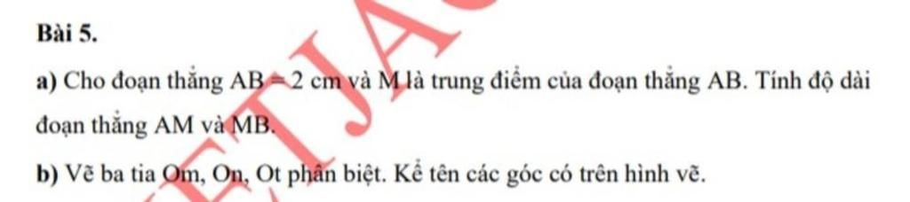 Nên đoạn thẳng $\text{AM}$ và $\text{MB}$ bằng : $\text{2 : 2 = 1 cm}$