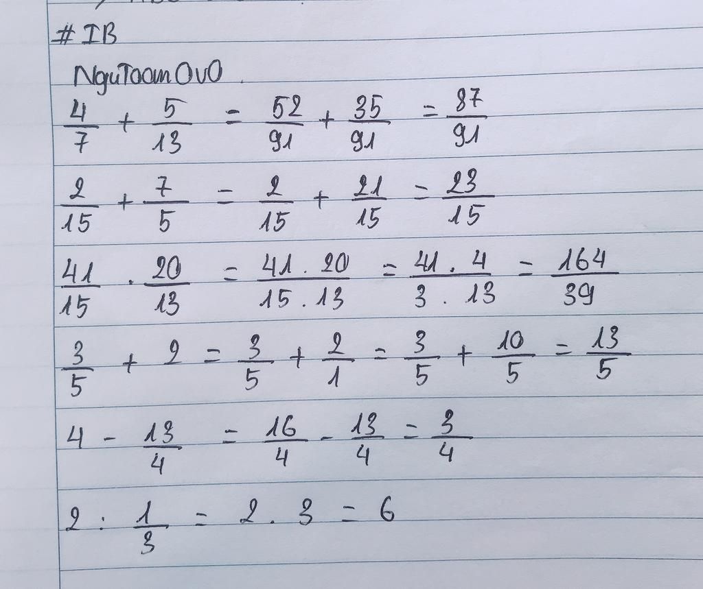`4/7 + 5/13 = (42 + 35)/(91) = 77/91`