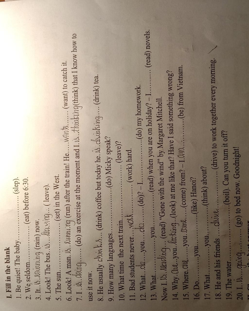 1. Be quiet ! The baby is sleeping ( Thì hiện tại tiếp diễn dùng sau câu mệnh lệnh )