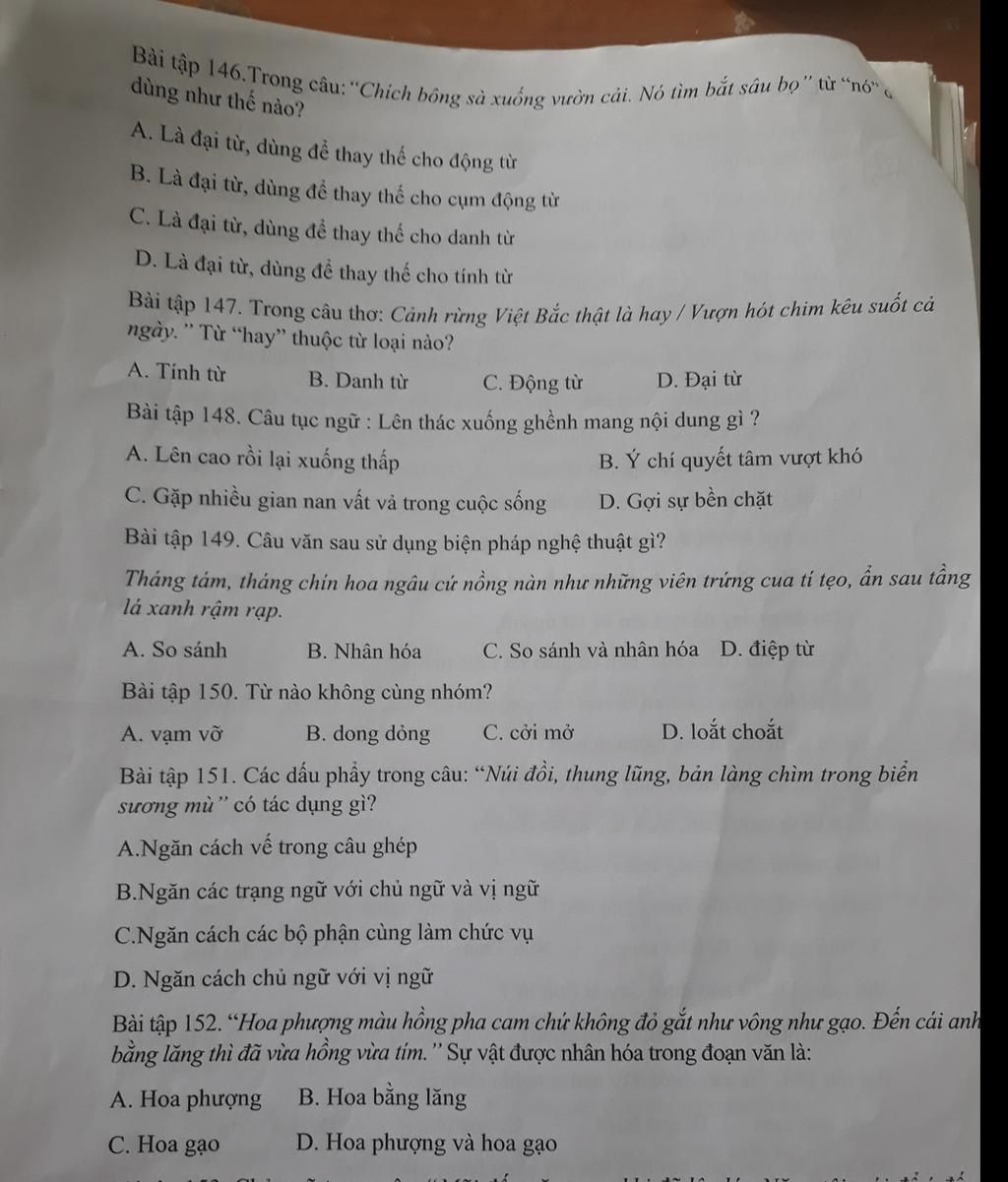 146. c (đại từ nó là chỉ 'chích bông' - danh từ)